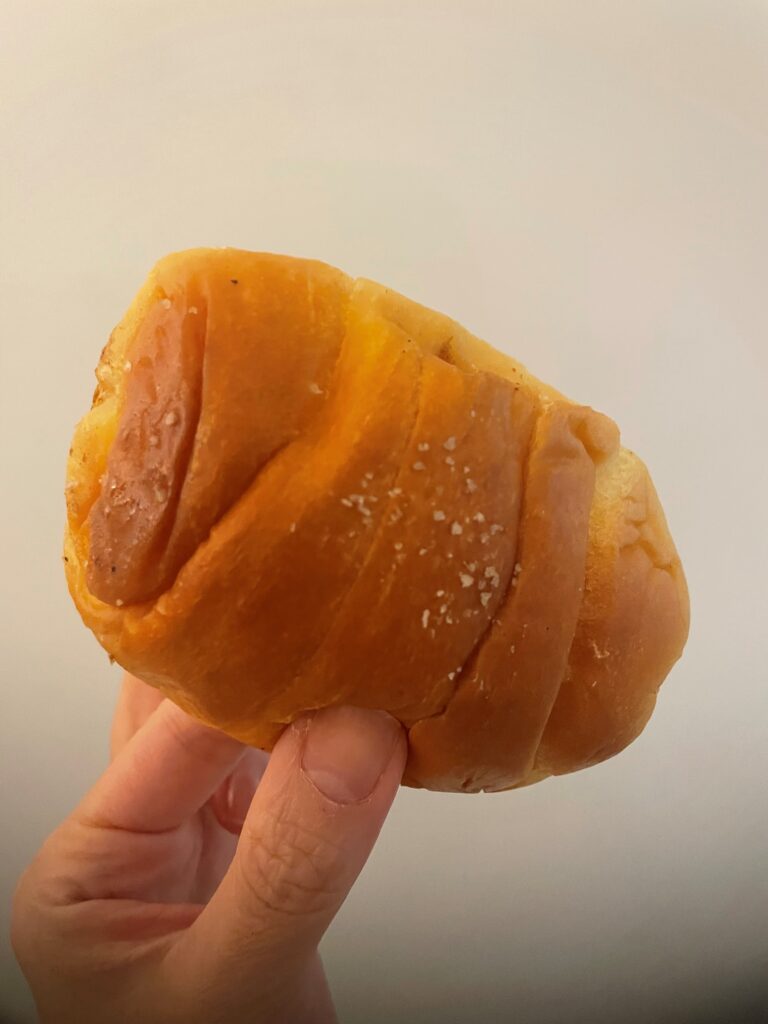 ひと口かじると、外はサクッと軽やか、中はふんわり。噛んだ瞬間、香り豊かなバターがジュワーっと口の中に広がり、そこに絶妙な塩加減が重なります。シンプルなのに、しっかり記憶に残る味わいです。