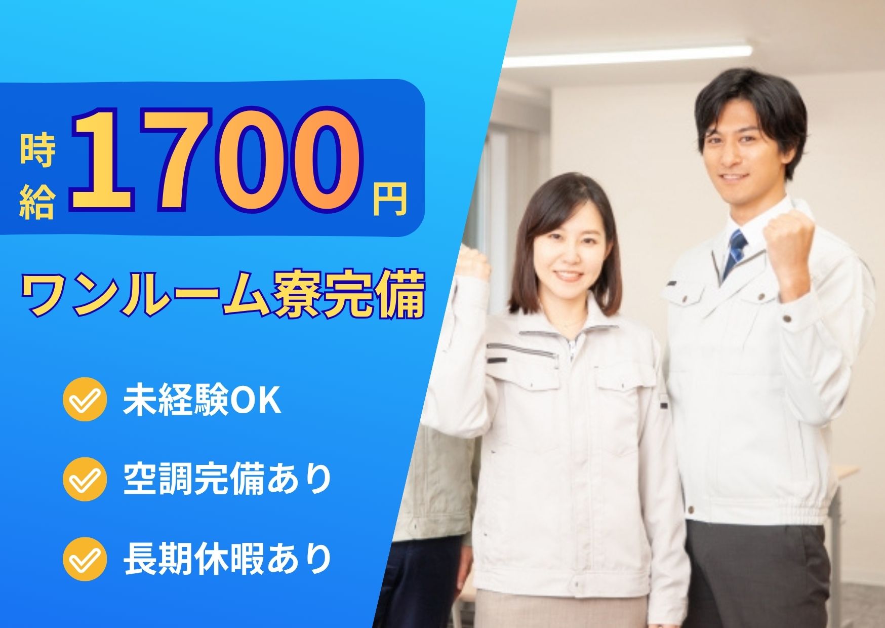 ☆☆寮入居者は、通常時給1500円のところ、時給1700円にアップ!!☆☆
